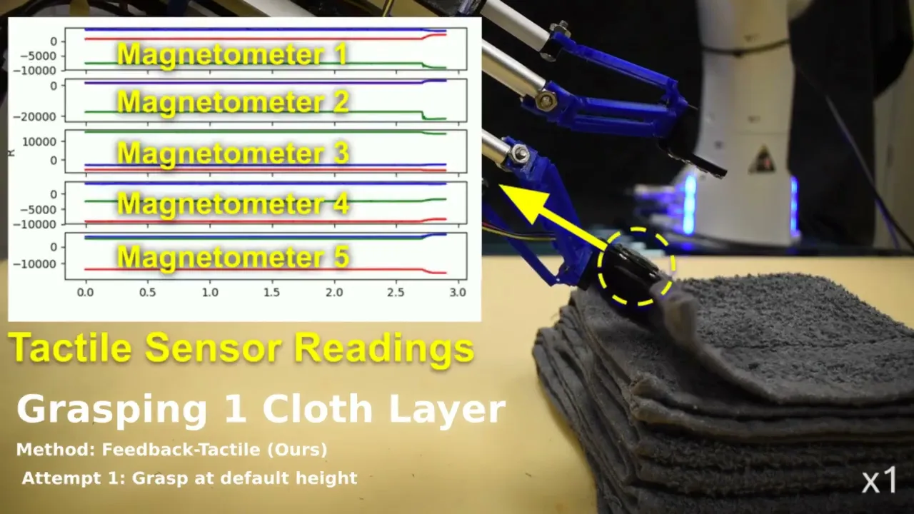연구진은 촉각 센서를 이용해 테이블에 놓인 수건을