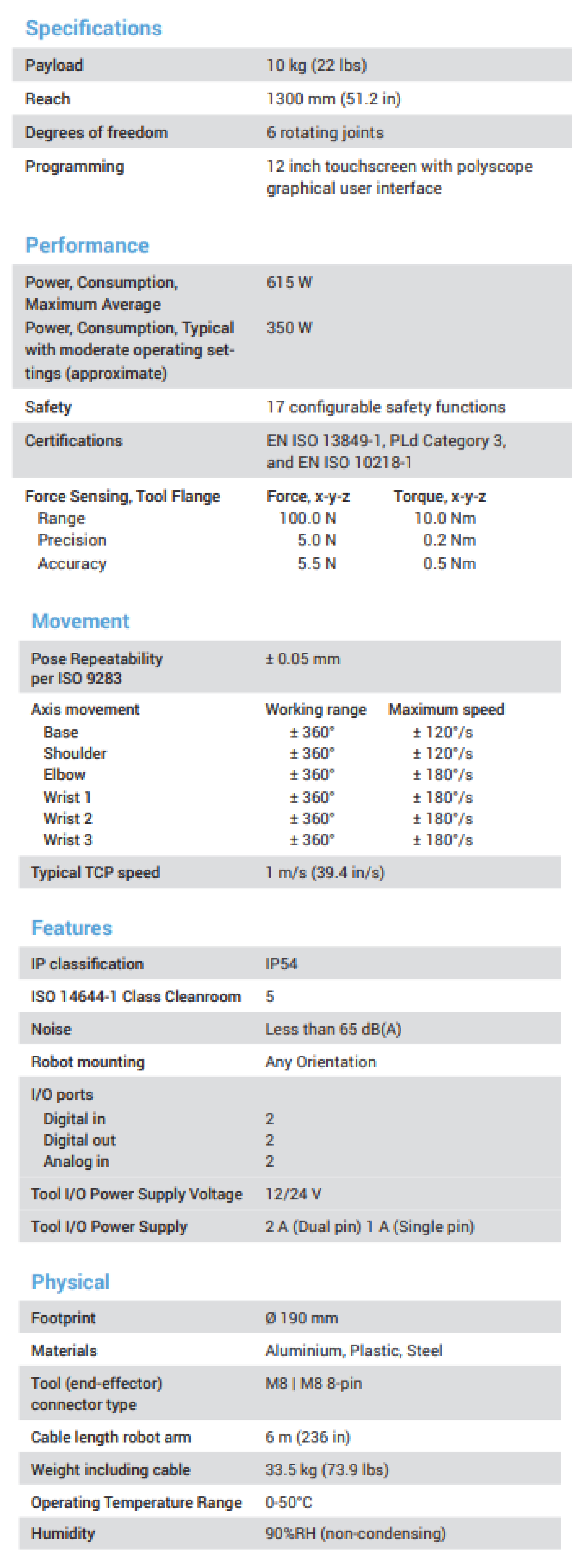 | 상품명(모델명) | Universal Robots 협동로봇 UR10e (Pay load : 10kg Reach : 1,300 mm) | ||