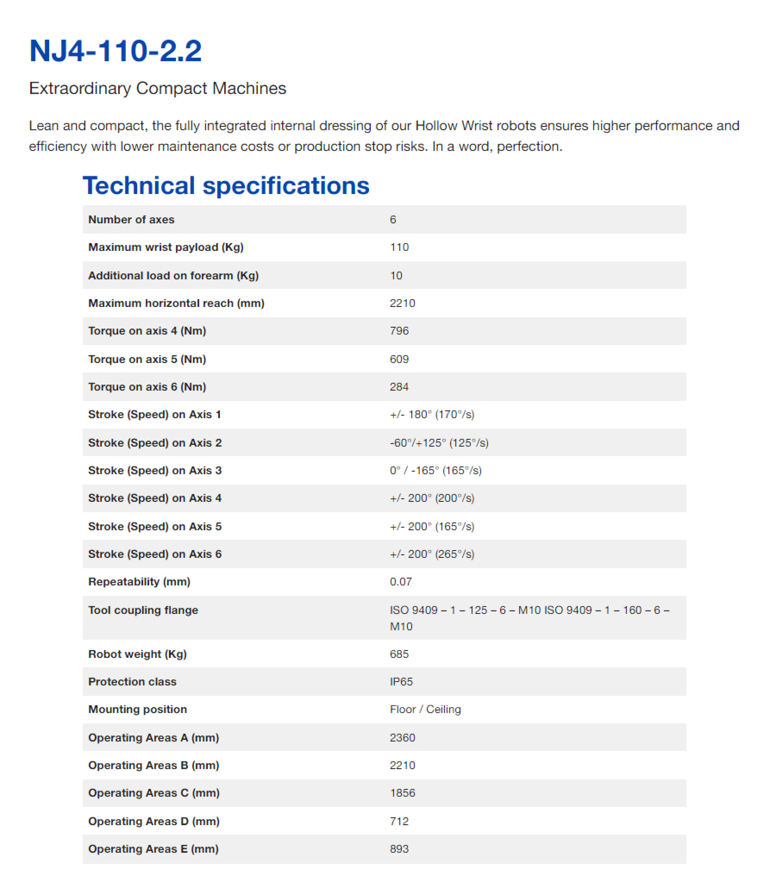 | 상품명(모델명) | Comau NJ4-110-2.2 (Payload : 110kg, Reach : 2210mm) | ||