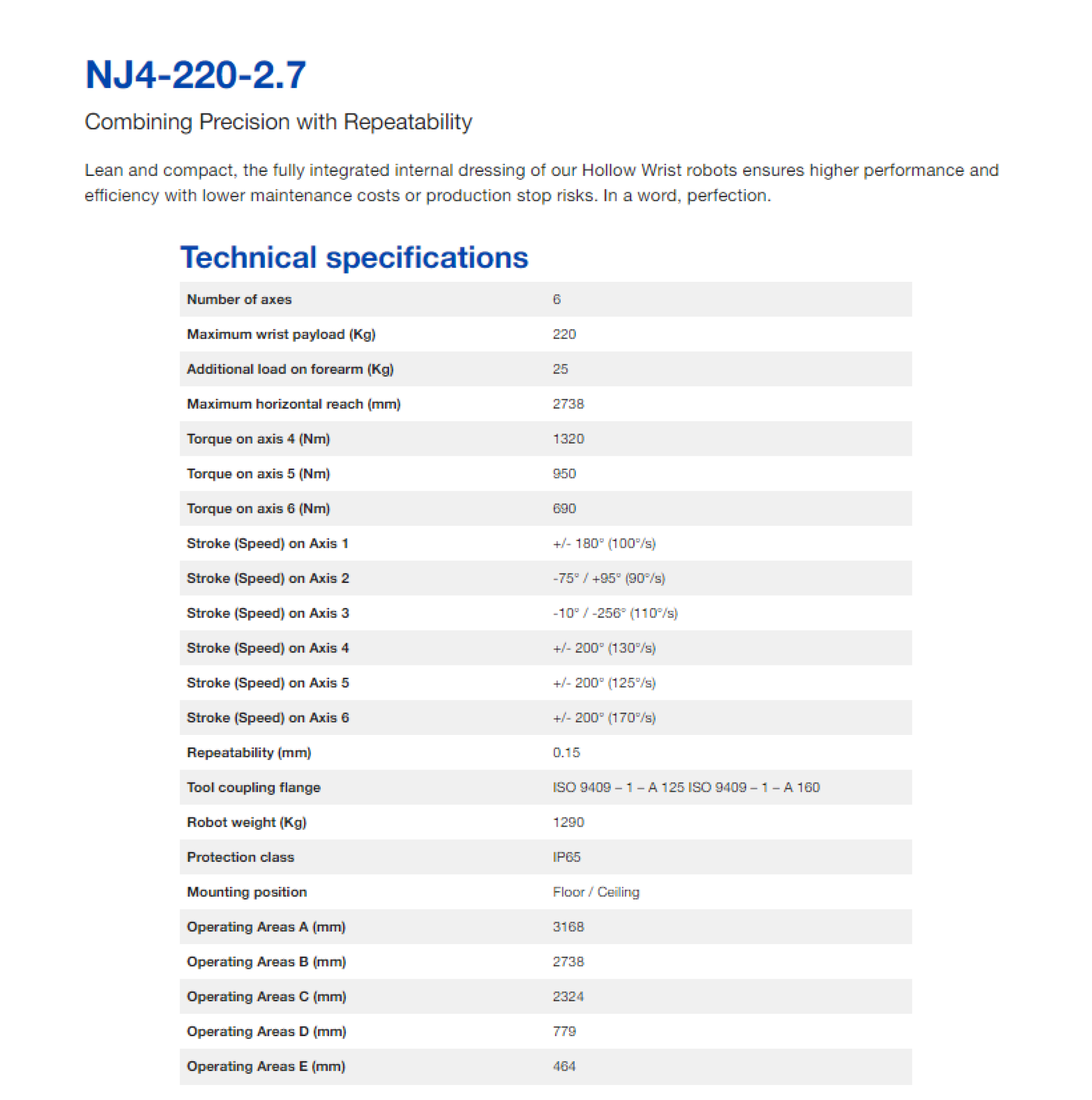 | 상품명(모델명) | Comau NJ4-220-2.7 (Payload : 220kg, Reach : 2738mm) | ||