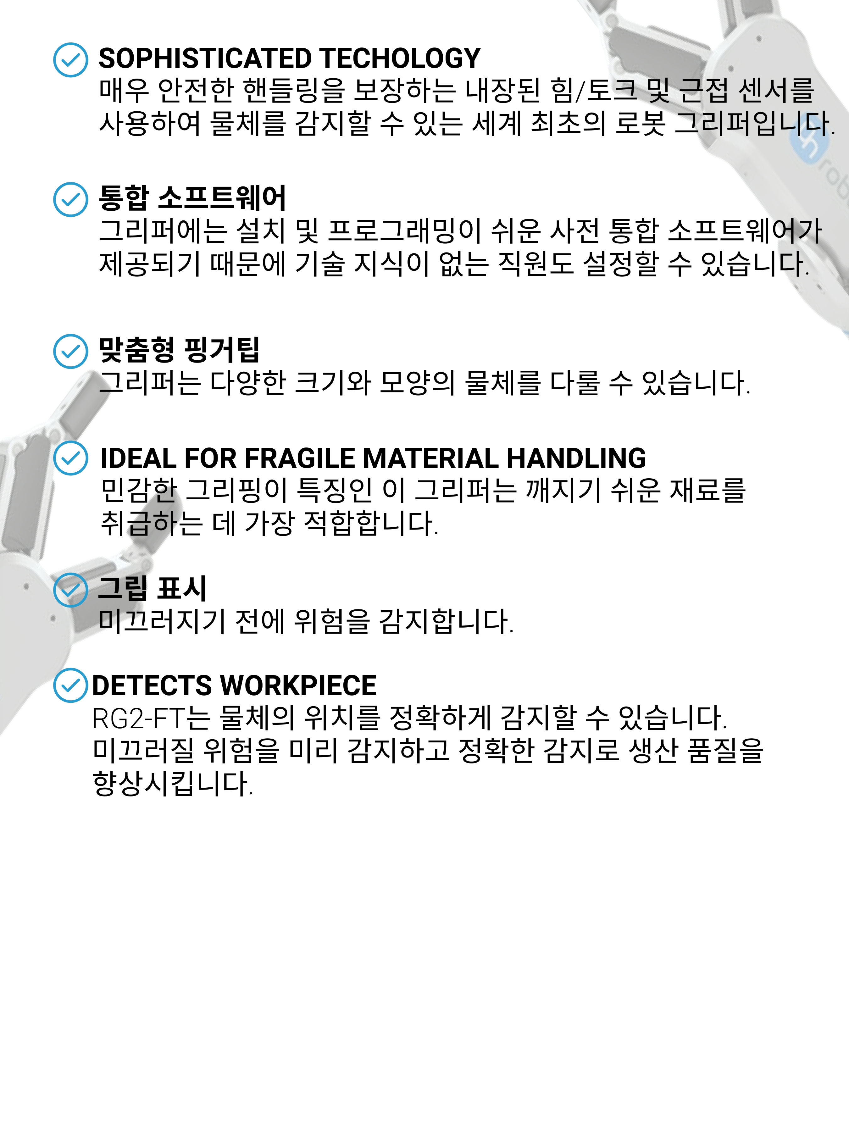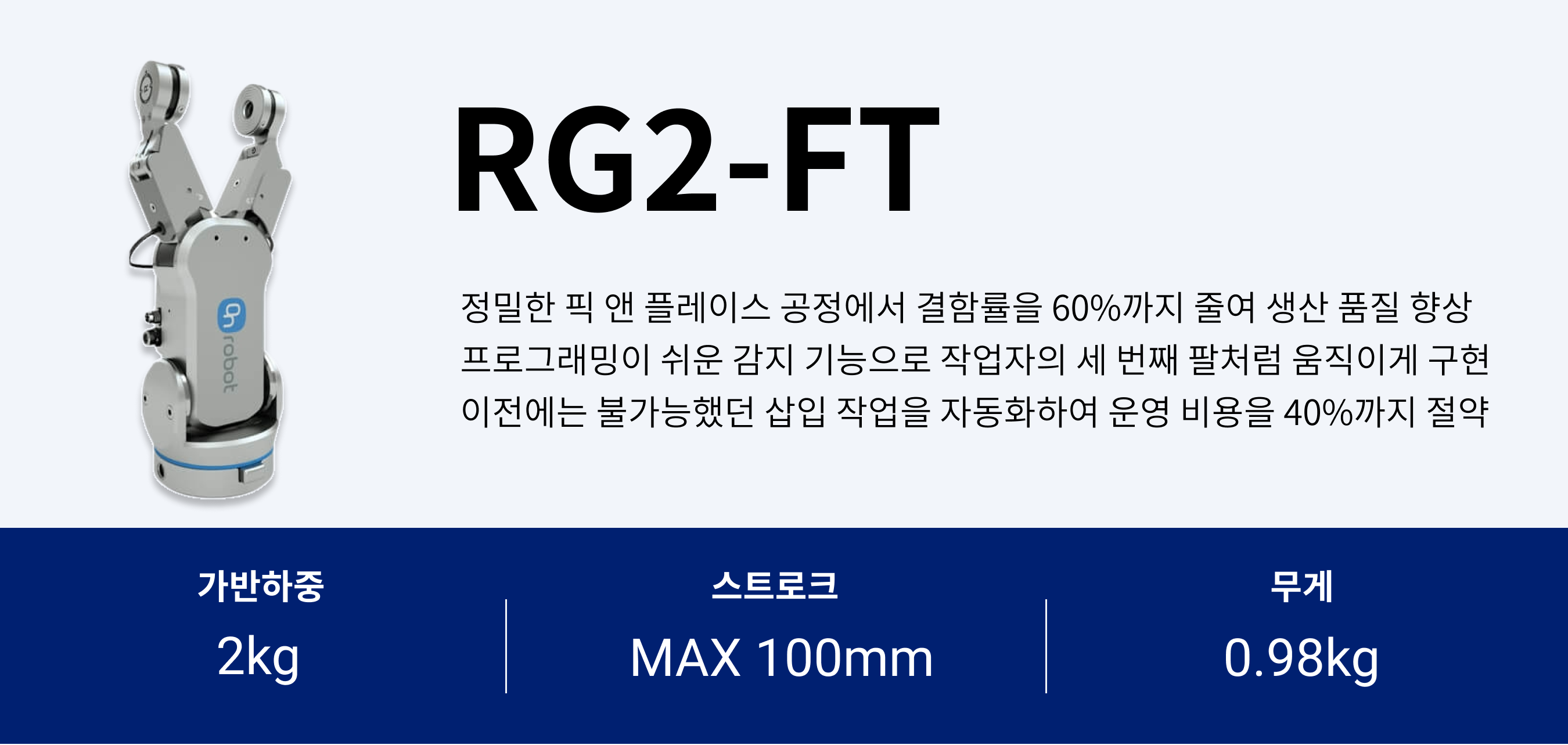 | 상품명(모델명) | OnRobot RG2-FT (가반하중: 2kg, 스트로크: 100mm) | ||