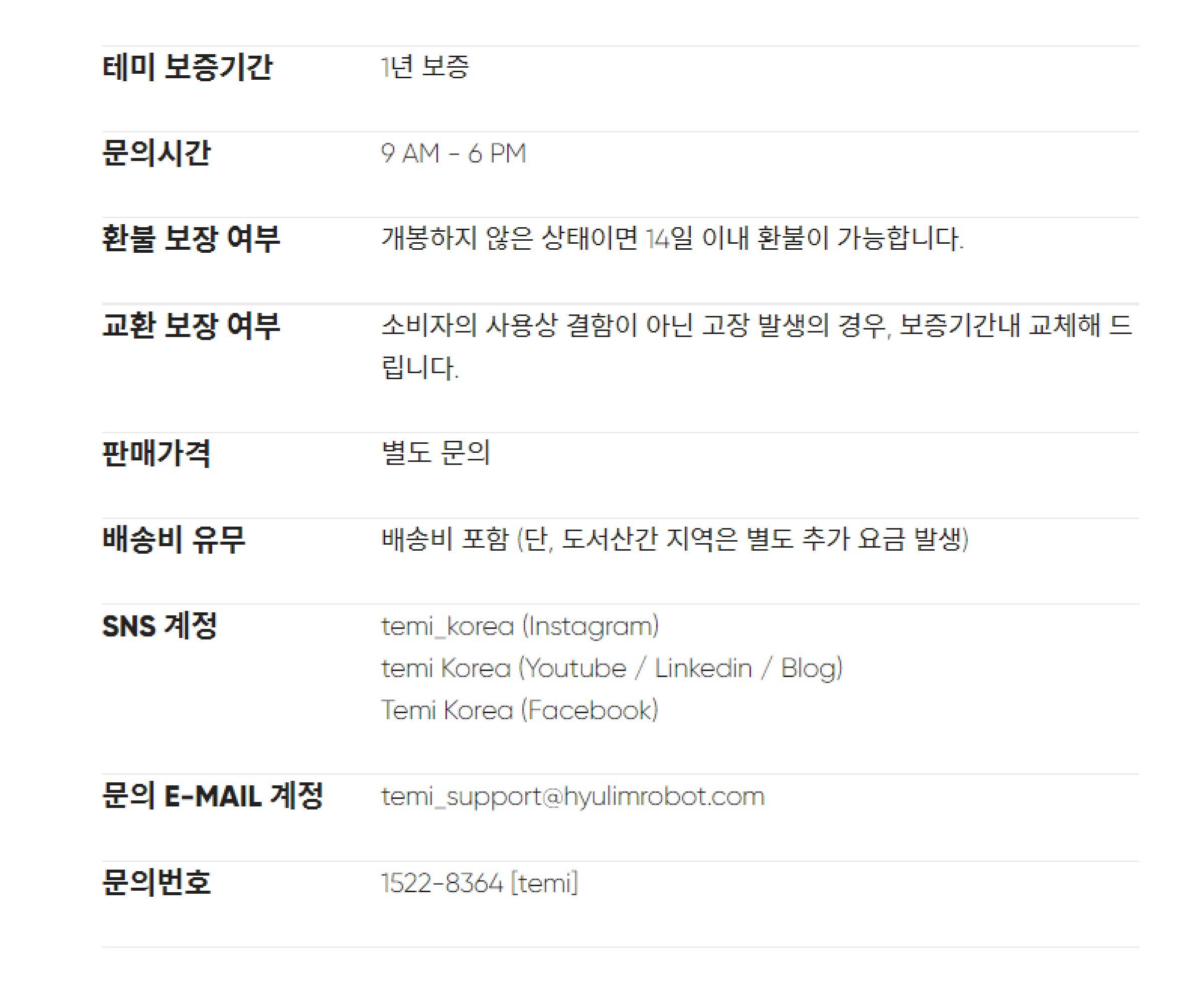 | 상품명(모델명) | 휴림 안내로봇 temi | ||